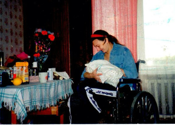 Фото с сайта disright.org. Татьяна Кришталь с новорожденной дочкой Викторией в квартире в Специальном доме на проспекте Рокоссовского